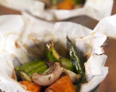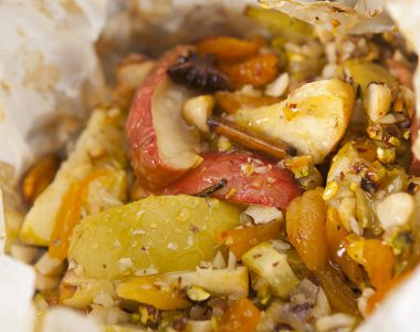 Frutas no papilotte com mel de especiarias
