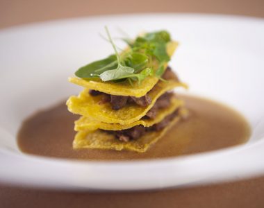 Mil folhas de polenta com babada e saladinha de agrião