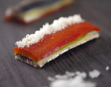 Sardinha com pimentão confitado no mel de laranjeira