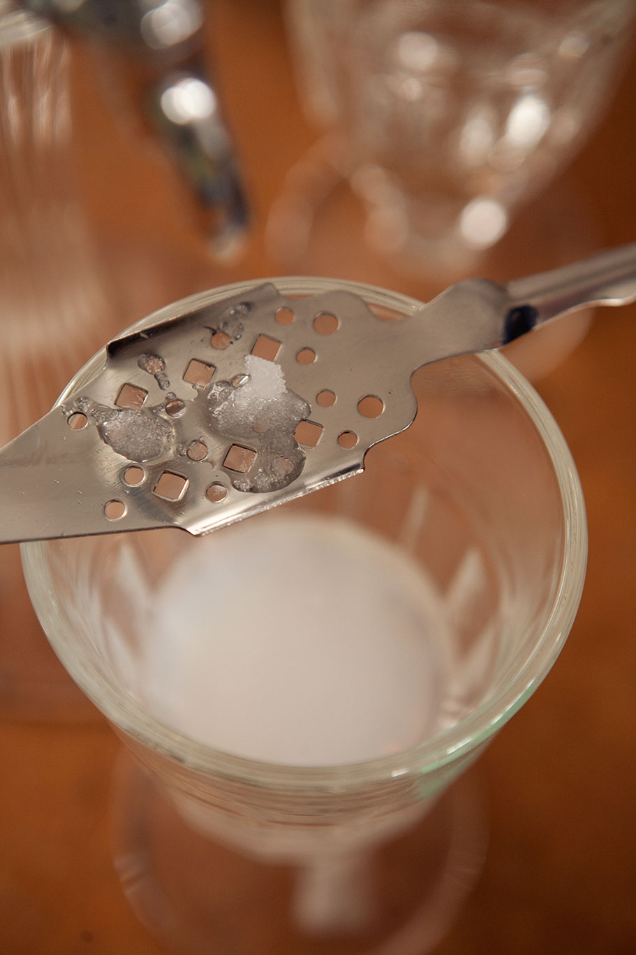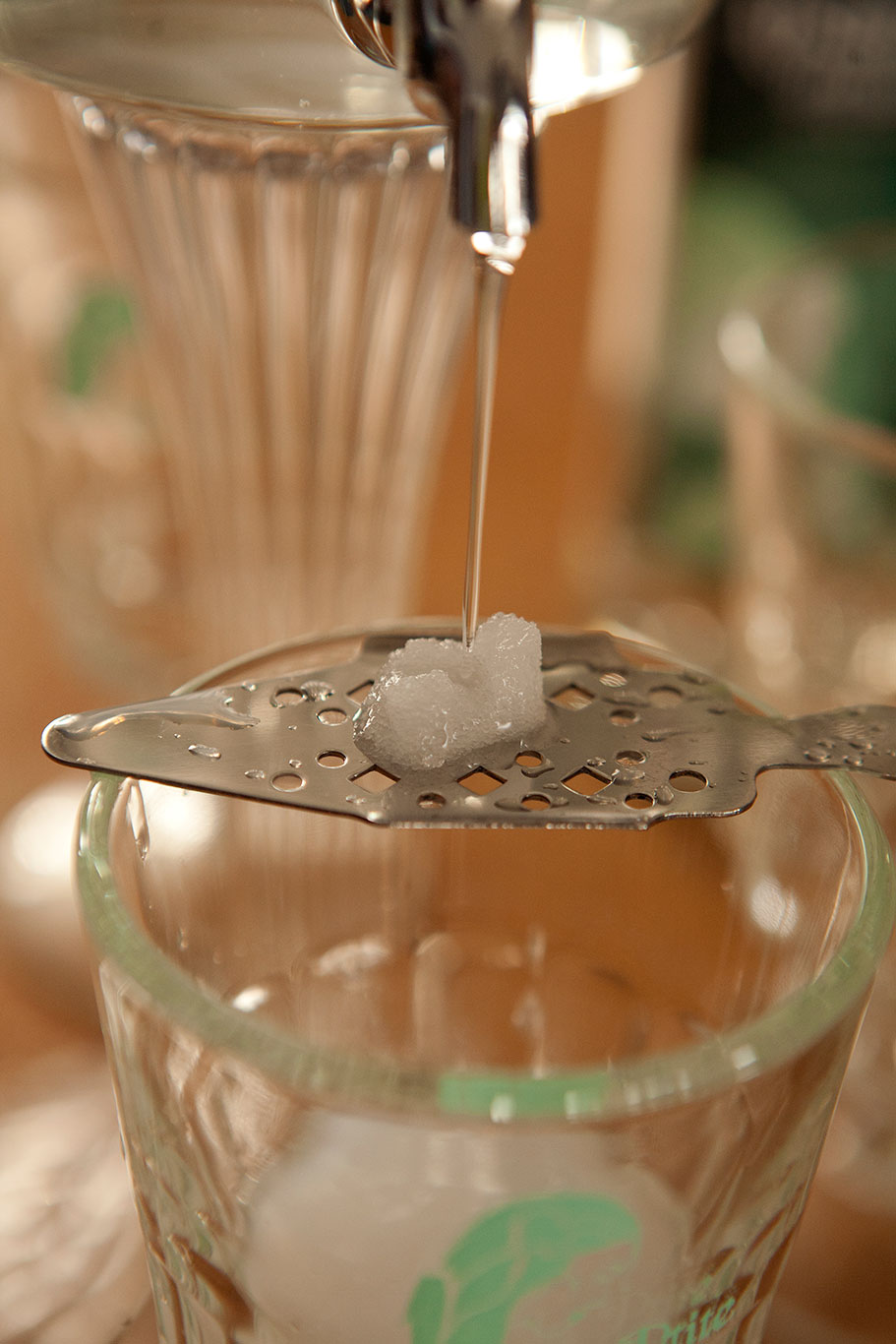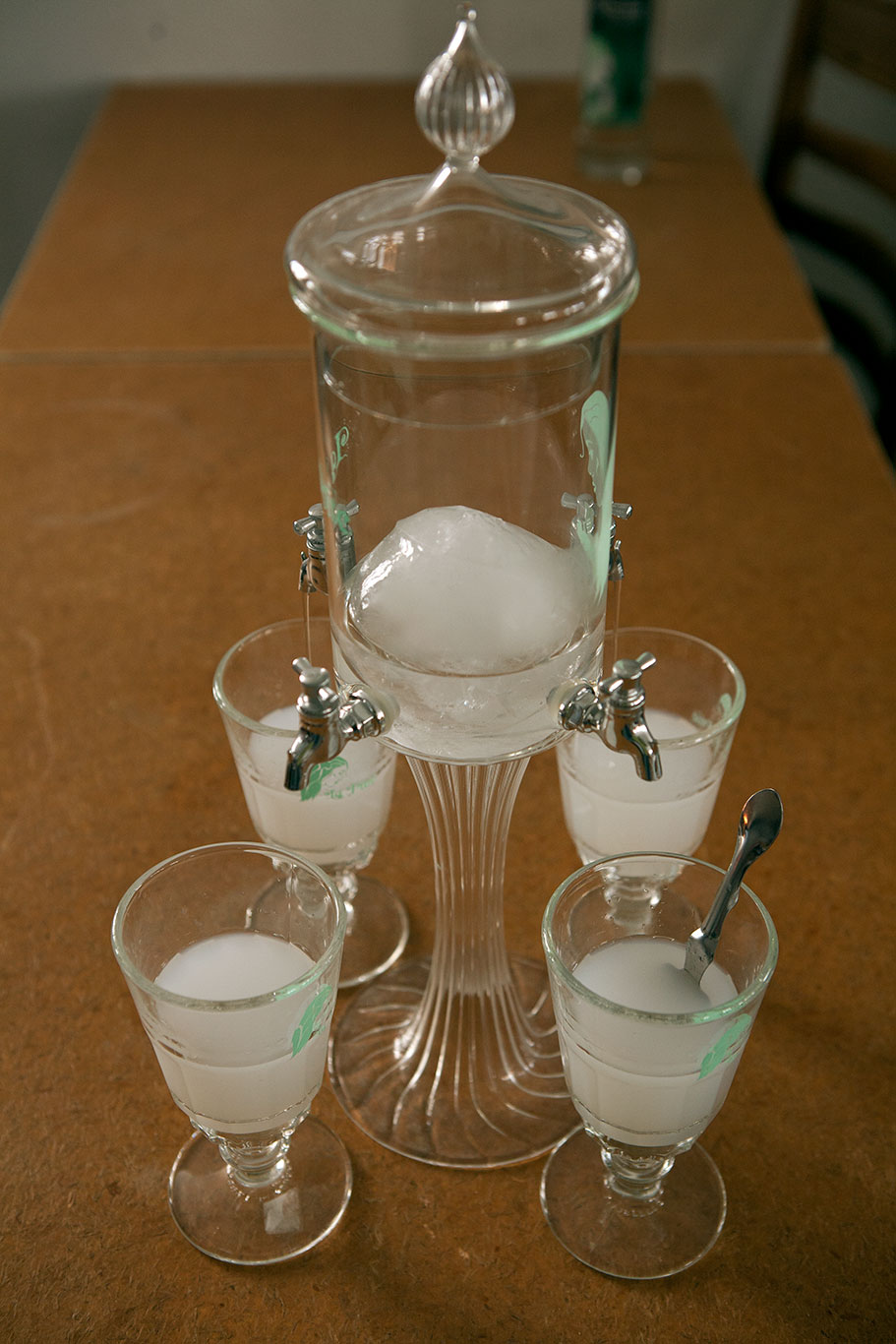 O absinto pode ser servido puro, mas sua forma mais tradicional de consumo é misturado ao açúcar e água gelada. A dose da bebida é posta num copo, e sobre ele, goteja lentamente a água gelada sobre um torrão de açúcar posto em uma colher furada, fazendo com que os sabores da bebida tornem-se mais delicados e atenuando sua graduação alcoólica