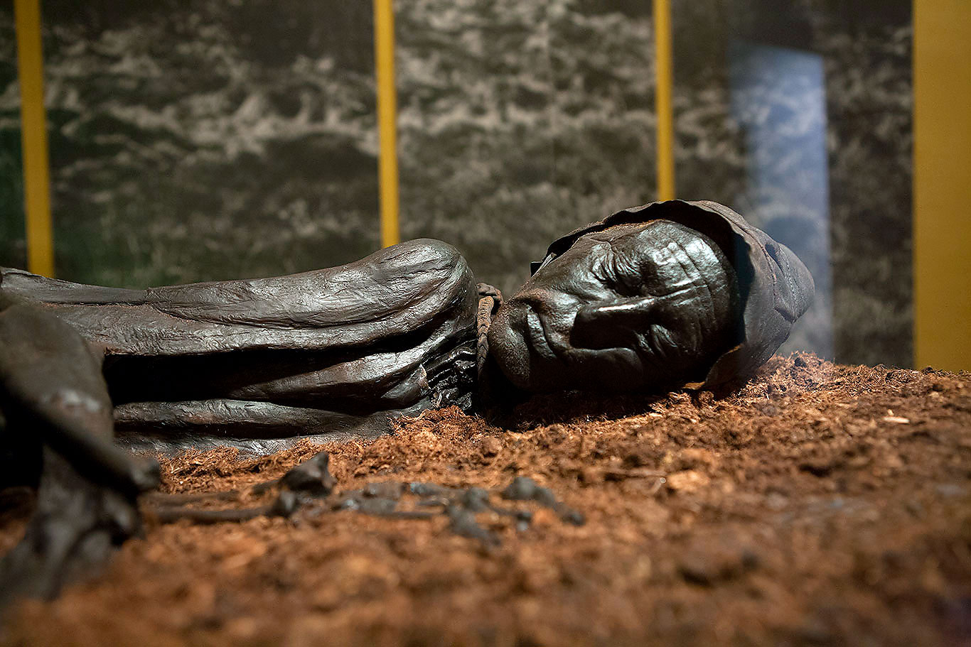 Na tarde de 6 de Maio de 1950, após terem semeado sua lavoura, os irmãos Emil e Viggo Højgård (rôigord) foram ao Pântano Bjaeldskov, localizado a 6 km da pequena cidade de Silkeborg, para cortar um pouco de turfa para suas casas. Ao cortar o terreno esponjoso e macio, a pá de Viggo encontrou algo duro. Removida a turfa, descobriu-se o corpo de um homem, cuja face muito preservada os fez pensar em uma vítima relativamente recente de assassinato. Os irmãos chamaram a polícia, que já tinha conhecimento da descoberta de outros corpos em semelhantes condições na área, em 1927 e também em 1938. Desta vez um arqueólogo foi chamado ao local. Os irmãos haviam descoberto aquele que é considerado pelos estudiosos como o mais bem preservado corpo da Idade do Ferro, um homem que a datação de carbono informa ter vivido por volta do ano 350 AC, e que perdeu sua vida aproximadamente aos 40 anos. Ele foi batizado de Homem de Tollund, em homenagem à vila onde os irmãos viviam. Trazia em torno do pescoço um sulco profundo e uma corda de couro trançado – fora enforcado. Em sua cabeça espantosamente bem preservada, um gorro de couro em ótimas condições, forrado de lã no interior. A serenidade visível em sua face e seu excepcional estado de conservação fizeram dele uma espécie de celebridade no jet set dos corpos da turfa.