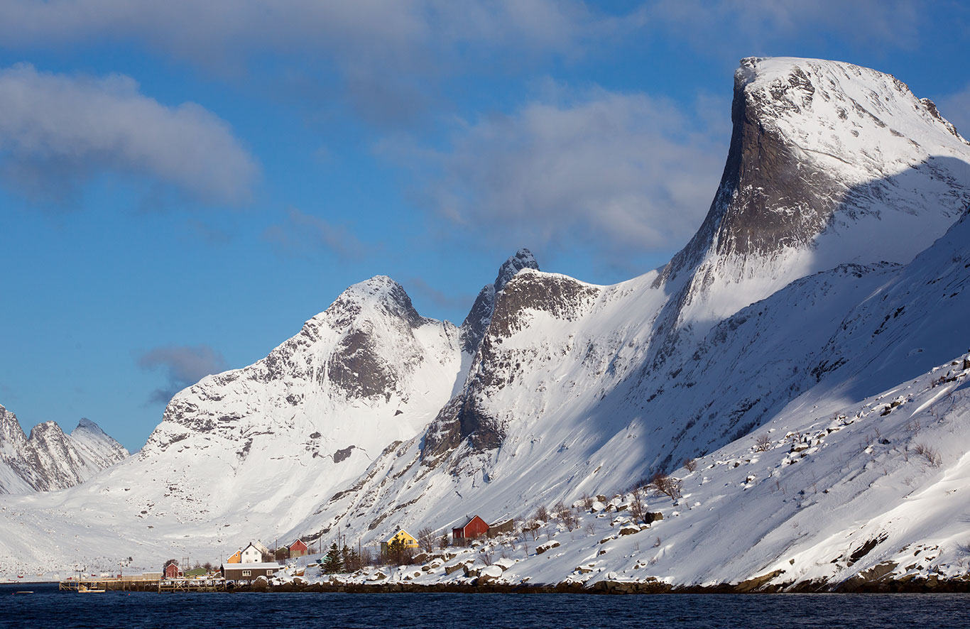 Passei duas vezes navegando diante de Røstad, encravada no interior de um fiorde e acessível apenas por mar. Na primeira, há uns anos, era Agosto, verão no hemisfério Norte. Eu estava indo caminhar e fotografar Bunnes Stranda, uma praia deserta visível à distância, a partir do alto de um flanco. Na segunda vez, naveguei pelo espetacular fiorde num mês de março, no inverno, em meio a uma paisagem inacreditável de grandes montanhas vestidas de branco num cenário de pura vastidão.