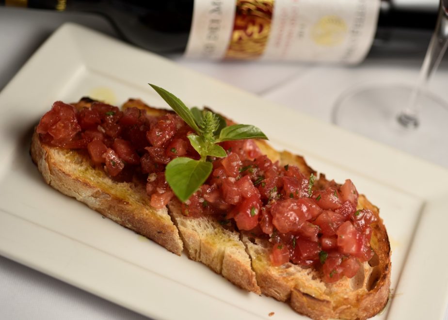 Corte 6 fatias de pão italiano com espessura de 1 cm, esfregue meio dente de alho nela e toste no forno ou na grelha.