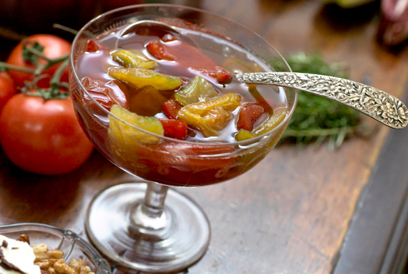 Coloque os tomates e deixe ferver por cerca de 1 hora, em fogo médio, acompanhando sempre o processo. Retire da panela e deixe resfriar por uma noite. Retire as especiarias e descarte.
