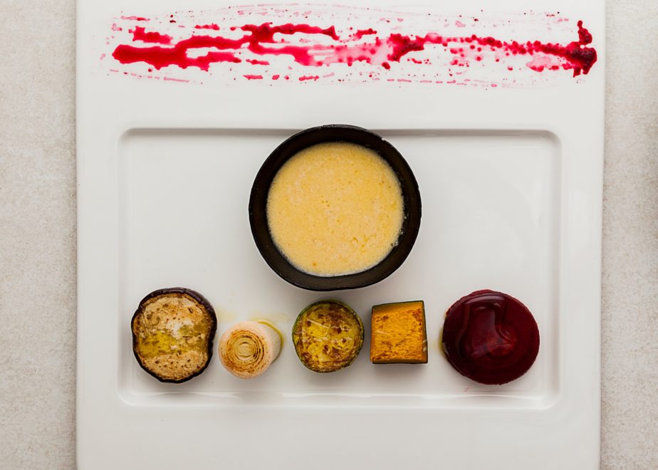 Corte os legumes em rodelas e quadrados de tamanhos iguais. Em uma assadeira, untada com azeite, coloque os legumes, tempere com sal e pimenta e regue com um fio de azeite.