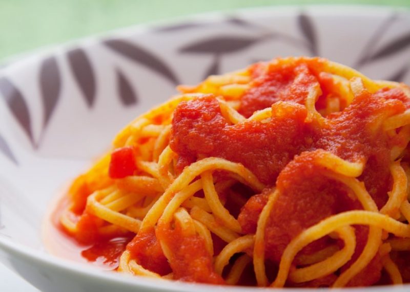 Molho: Em uma panela, aqueça o azeite, coloque o alho para dourar, salteie os tomates pelados e junte a pimenta seca; veja o sal. Cozinhe a massa em abundante água fervente até ficar al dente. Passe-a para uma panela, acrescente o manjericão na hora de servir.