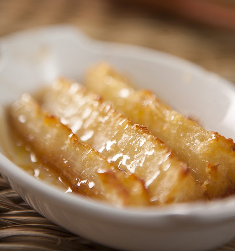 Esta mandioca acompanha carnes muito bem. Esse prato também fica muito bom com a mandioquinha.