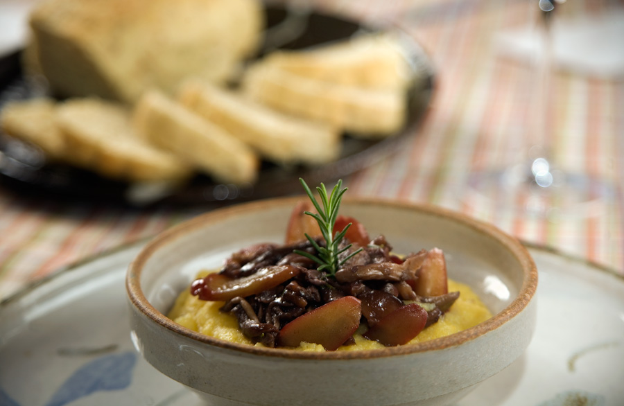Polenta com Ragú de Cogumelos & Pinhão