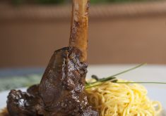 Montagem: Numa travessa, coloque o stinco, junte os legumes com o molho, cubra com papel manteiga e papel alumínio, assar em forno moderado por aproximadamente 5 horas.