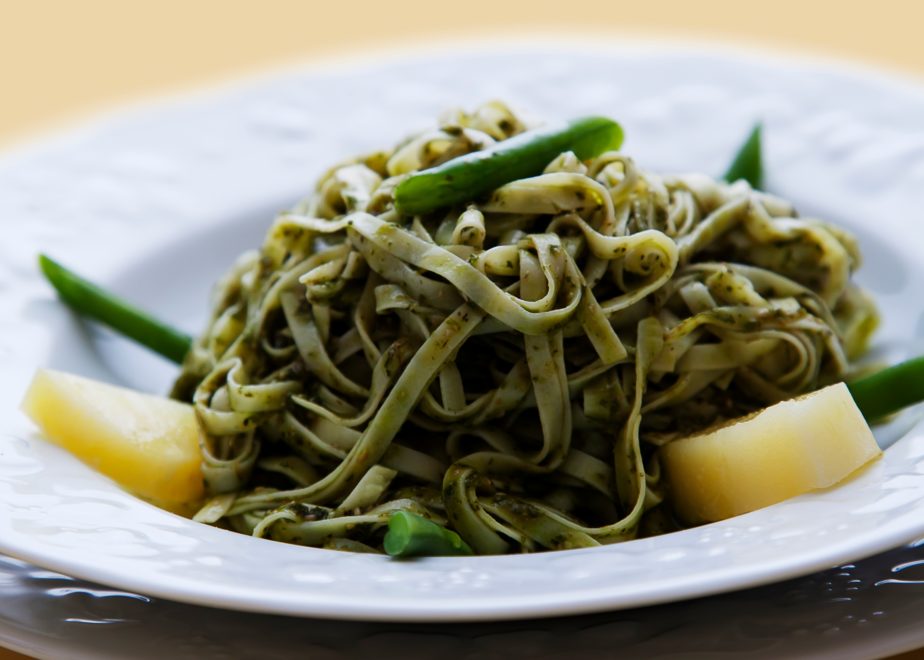 Massa: Cozinhe a massa ao dente e no momento de temperar a massa dilua o pesto com uma colher de água fervendo do macarrão.
