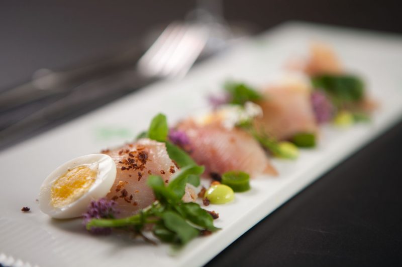 Para servir, disponha num prato os filés, os ovos de codorna cortados ao meio, pedaços de rabanete (opcional), ervas decorativas, queijo (opcional) e salpique com gotas de limão.